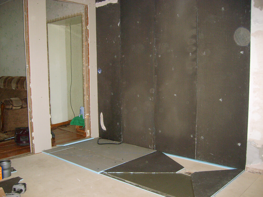 Благодаря значительной прочности теплоизолирующих плит, их удобно использовать для монтажа стеновых конструкций и перегородок небольших парилок. Для этого понадобятся лишь пластиковые направляющие, специальный клей и уплотнительная водостойкая лента.