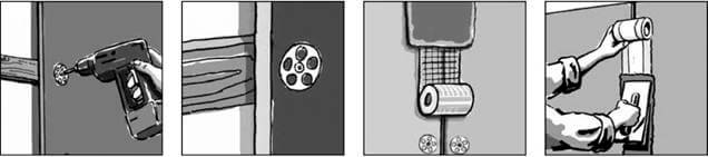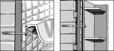 Так выглядит установка полки и других легких предметов с применением полостного дюбеля или крепления на базе порошкообразных материалов. |