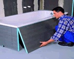 3. Закрепите панели TEPLOFOM+ под край ванны, после чего подравняйте их. После этого они соединяются и выравниваются, при этом используется специальный клей-герметик. Им также следует промазать и вертикальные детали.
